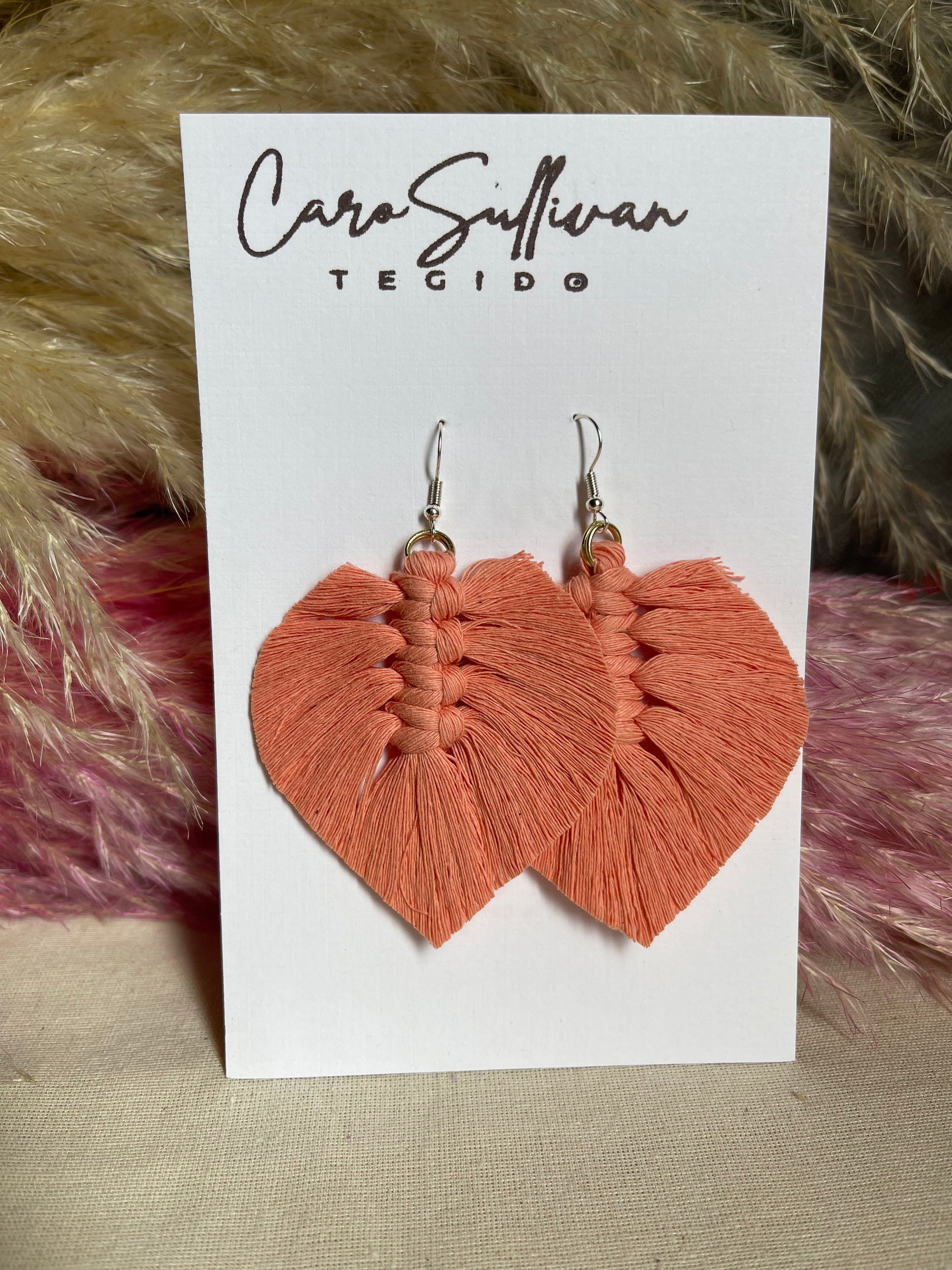 Aretes en macramé, hechos a mano con gancho de acero inoxidable, modelo pluma